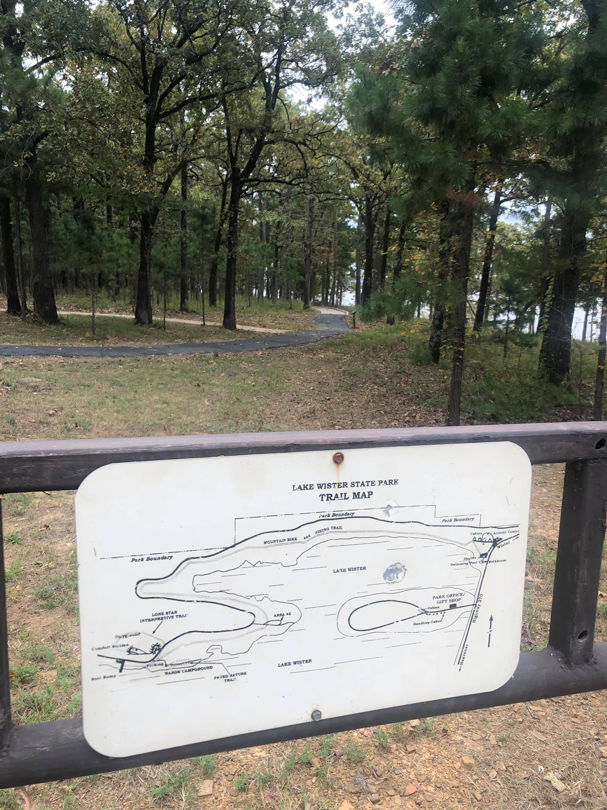 The colors were a little more vibrant today. We were ready to head toward home.  We stopped by Wister Lake to check out hiking trails.  We completed just shy of a total of 50 miles of hiking on our trip.  The only reason we did not complete our goal of 50 miles was due to the bad conditions of portions of the trails on the last day.  The trip was such a great first time on the Ouachita Trail and hope for much more hiking there in the future.   Enjoyed time with friends and already planning another trip for next fall.